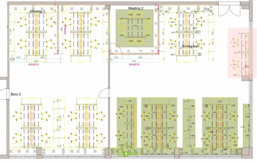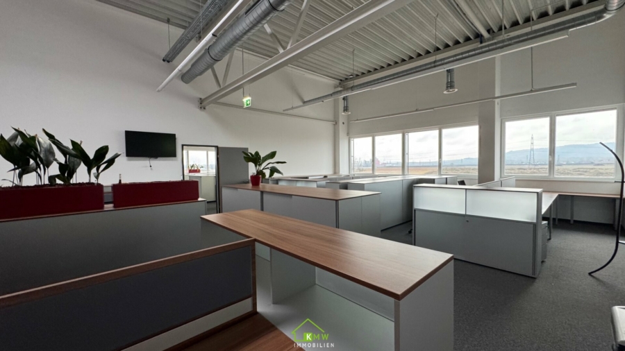 Die voll ausgestatteten Büroflächen teilen sich in 2 große Räume und einen verglasten Präsentationsraum.