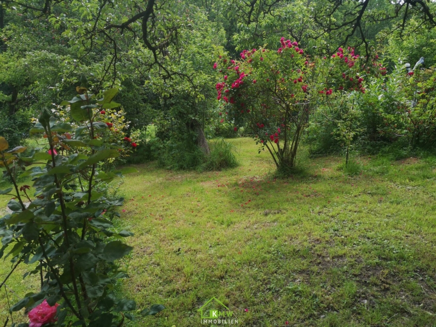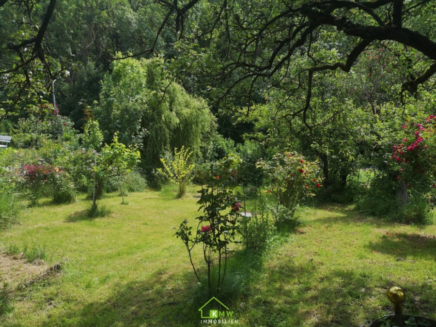 Am Grundstück befinden sich Rosensträucher, Pfirsich, Brombeeren, Weinstöcke Magnolie, Josta, Feige Kiwi, etc.