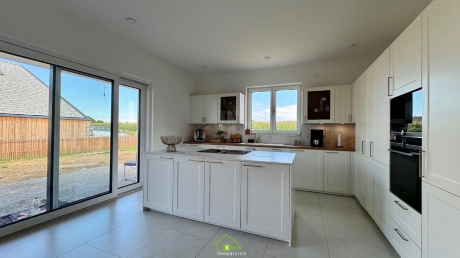 Ein wahres Highlight ist die offene Küche mit Insel, welche einen versteckten Raum/Speis bietet.