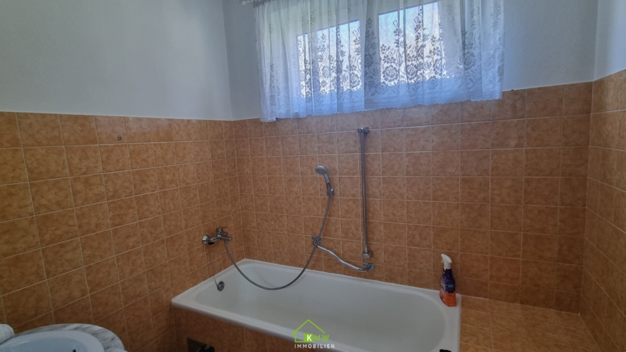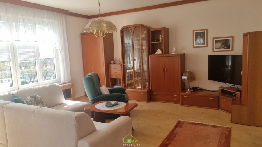 Die Wohnfläche von rund 105 m² verteilt sich auf Wohnzimmer mit Ausgang auf die Terrasse, 3 Schlafzimmer, Gang, Vorraum, Abstellraum, Küche, Bad mit Badewanne und separates WC.