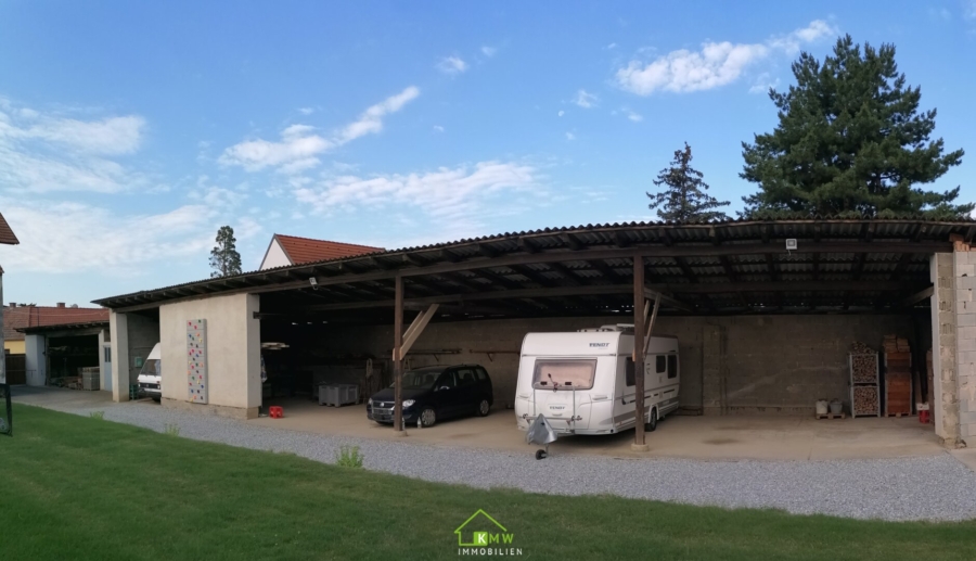 Einstellplatz/Garagenplatz/Carport Stellplatz mit Überdachung und betoniertem Boden.