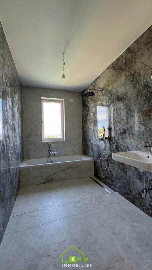 Das Wohnambiente ist modern und luxuriös, es gibt Fliesen, Parkett, Raffstore, Fußbodenheizung, Smart Home und vieles mehr !