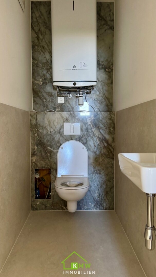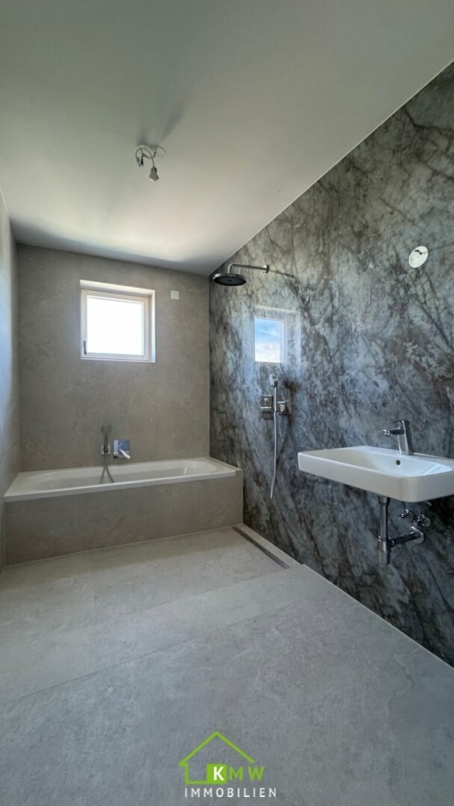Das Wohnambiente ist modern und luxuriös, es gibt Fliesen, Parkett, Raffstore, Fußbodenheizung, Smart Home und vieles mehr !