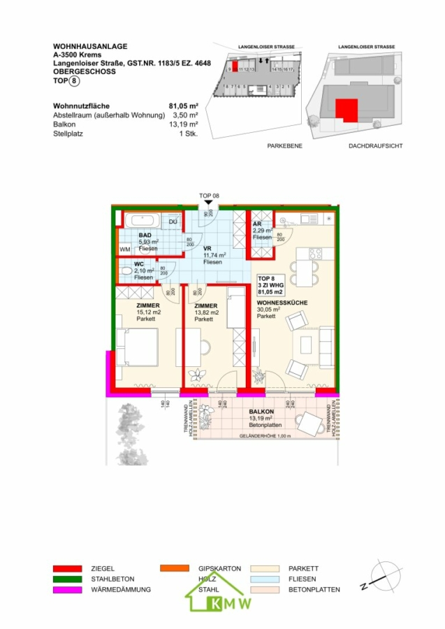 Die Wohnung bietet eine Wohnfläche von ca. 81,05 m² und eine ca. 13,19 m² Terrasse.