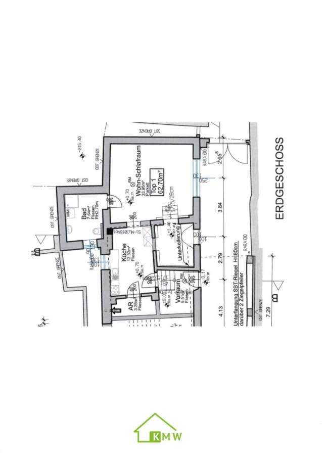 Diese unterteilt sich auf: Vorraum(Eingangsbereich), Küche mit Essbereich, Speis(Abstellraum), Badezimmer mit Dusche und WC, wohn-Schlafraum und Büro(Kabinett).